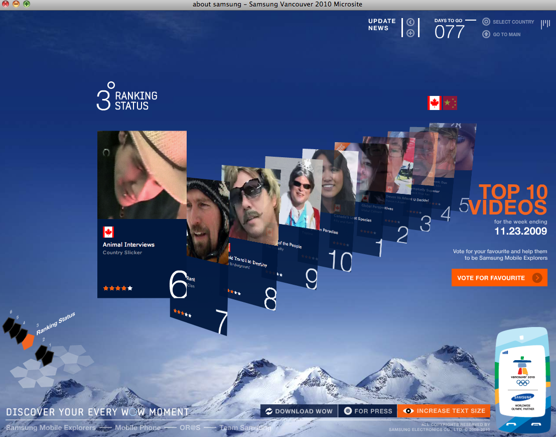 Los videos virales nunca sabes cuándo o cuál va a dispararse. Este es uno bastante nuevo producido por Samsung en vísperas de su patrocinio de los próximos juegos invernales de Vancouver 2010.
