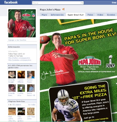 Cada empresa tuvo sus razones, pero una de las que ha llamado más la atención es Papa John’s, quién esta llevando una estrategia en redes sociales relacionada con el Super Bowl, la cuál consiste en regalar una pizza grande a todos los americanos si el Super Bowl entra a su primer tiempo extra de la historia, el gancho esta en registrarte es su programa de lealtad antes del día del juego.
